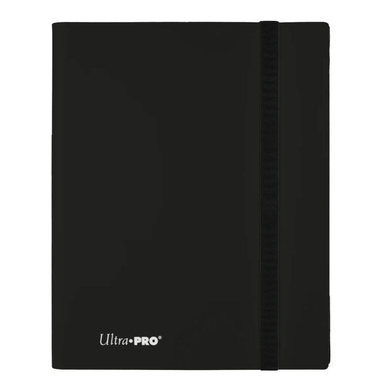 9pocket Jet Black PROBinder with embossed middle black web material gives cards a classic framed look. Side loading pocket design to prevent cards from easily falling out. Elastic strap holds the binder schut when not in use. All materials made from archivalsafe, acidfree nonPVC material. Holds 360 cards in Ultra Pro Deck Protector sleeves.