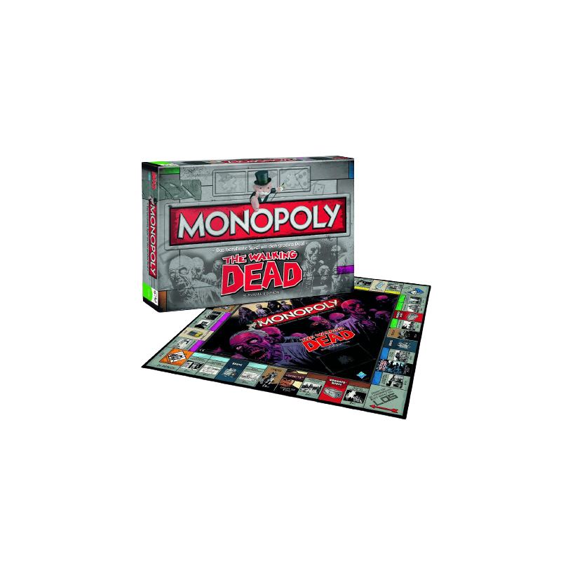 Die Welt, wie wir sie kannten, ist Geschichte. Ihr bisheriges Leben voller Überfluss und käuflichem Vergnügen ist vorbei. Willkommen in einer Welt, in der schnelle Entscheidungen, Mut und Geschick den Unterschied zwischen Leben und Tod bedeuten. THE WALKING DEAD, eine der erfolgreichsten Comicserien der letzten Jahre, ausgezeichnet mit dem Eisner-Award und inzwischen ebenfalls eine ebenso erfolgreiche TVSerie begeistert unzählige Fans. Monopoly fängt die bedrückende Atmosphäre der Serie ein und ermöglicht es Fans, den Kampf um das nackte Überleben spielerisch und ohne Gefahr nachzuerleben.