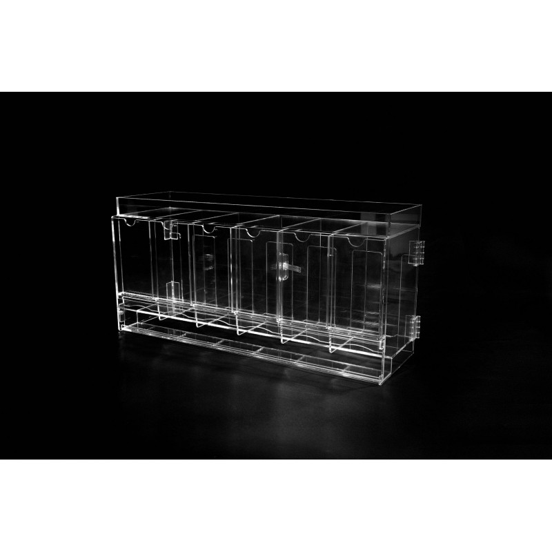 The Acrylic Box 6-slot pack dispenser is an ideal solution for retail shops and streamers looking to showcase, store, and protect their packs. This dispenser features six slots, with each slot accommodating a full booster box (at least 36 packs). Its stackable design maximizes space efficiency, and the slots are compatible with multiple TCG brands.