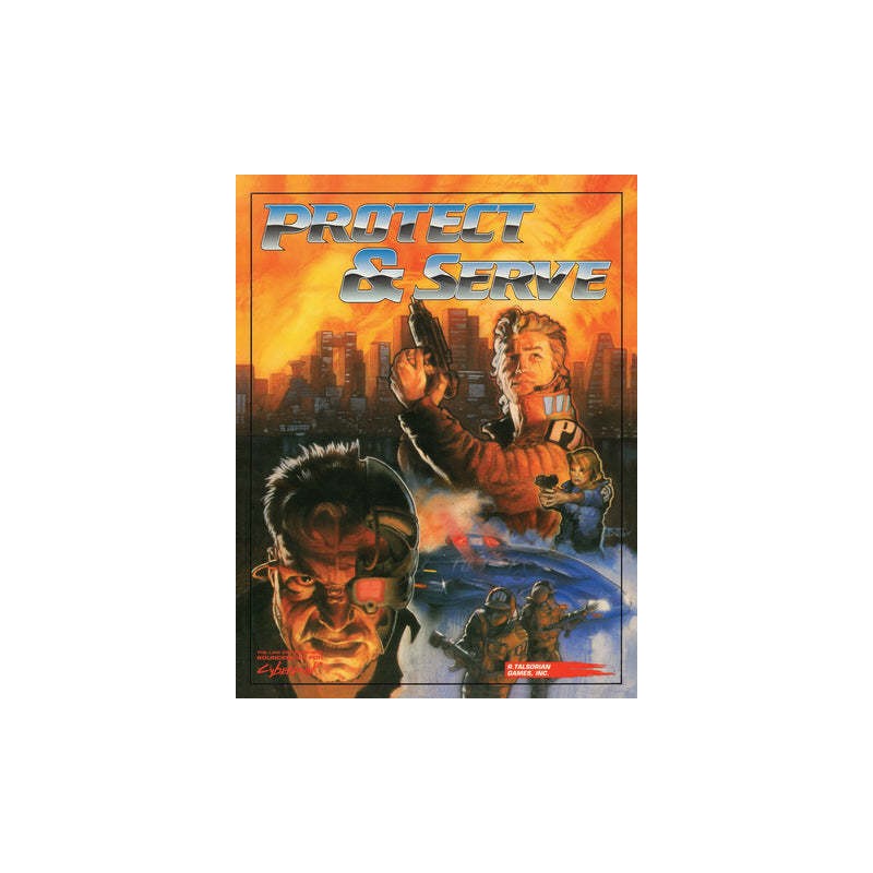 Lt.DeVris pulled up the headset and yelled into it. "REECE! GO!" The headset crackled as Reece's voice came back to him. "Okay—we're proceeding up the stairwell. I don't think there's as many as—" The entire block shook with an almighty blast from the booby-trapped stairwell. Slammed in the pressure wave, a police cruiser flipped while another nearby caught fire. DeVris ripped the headset from his ears as it emitted a shrill scream of static. Reece and his men were…gone. In 2020, the Street is ablaze, and the only Law comes from the barrel of a gun. Now R.Talsorian gives your hard fighting cops of the cyberpunk world the tools they need to hold the Line against the rising tide of crime: Protect and Serve. The complete Law Enforcement Sourcebook for the mean Streets of 2020, Protect and Serve has cop talk, cop cars, cop training, cop guns—everything your super cop character needs to take down the perps and punks of the Dark Future! Because when Night City is on fire, only you can BRING THE RAIN! Merken Protect and Serve
