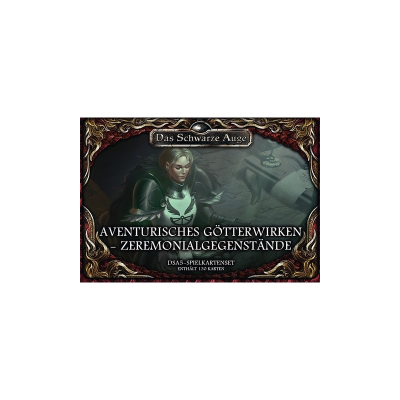 Das Set enthält alle Zeremonialgegenstände aus Aventurisches Götterwirken, beispielsweise den Korspieß, den Ingerimmshammer und das Prisma der Tsageweihten.