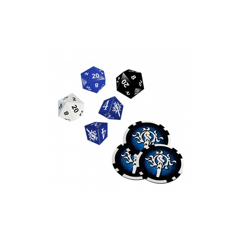Das Magier-Würfelset enthält drei zwanzigseitige und zwei sechsseitige Würfel, die du zum Spielen von Das Schwarze Auge verwenden kannst. Einer der zwanzigseitigen Würfel ist in Blau gehalten, die anderen beiden sind schwarz bzw. weiß. Die sechsseitigen Würfel zeigen statt der Zahl 6 ein Magier-Symbol. Das Set enthält zudem drei Schicksalspunkte. Mittels Schips kann dein Held die gefährlichsten Situationen überstehen, in denen manch anderer den sicheren Tod gefunden hätte, und nicht selten sind sie das Zünglein an der Waage, wenn es darum geht, heldenhafte Taten zu vollbringen.