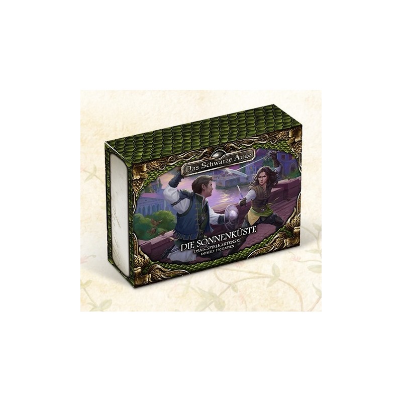 Dieses Set mit 168 Karten enthält die Zauber, Rituale, Liturgien, Zeremonien, Sonderfertigkeiten, Wesenszüge, Ausrüstungsgegenstände und weitere nützliche Inhalte aus der Regionalspielhilfe Die Sonnenküste, der Rüstkammer der Region sowie dem Abenteuer Labyrinth der Intrigen. Auf den Karten befinden sich alle relevanten Informationen, sodass man sie als Meisterin direkt im Spiel nutzen kann.
