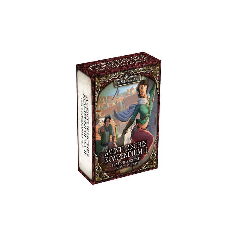 Dieses Spielkartenbundle enthält alle Spielkarten zu Vor- und Nachteilen, Sonderfertigkeiten und anderen nützlichen Übersichten aus dem Aventurischen Kompendium II.