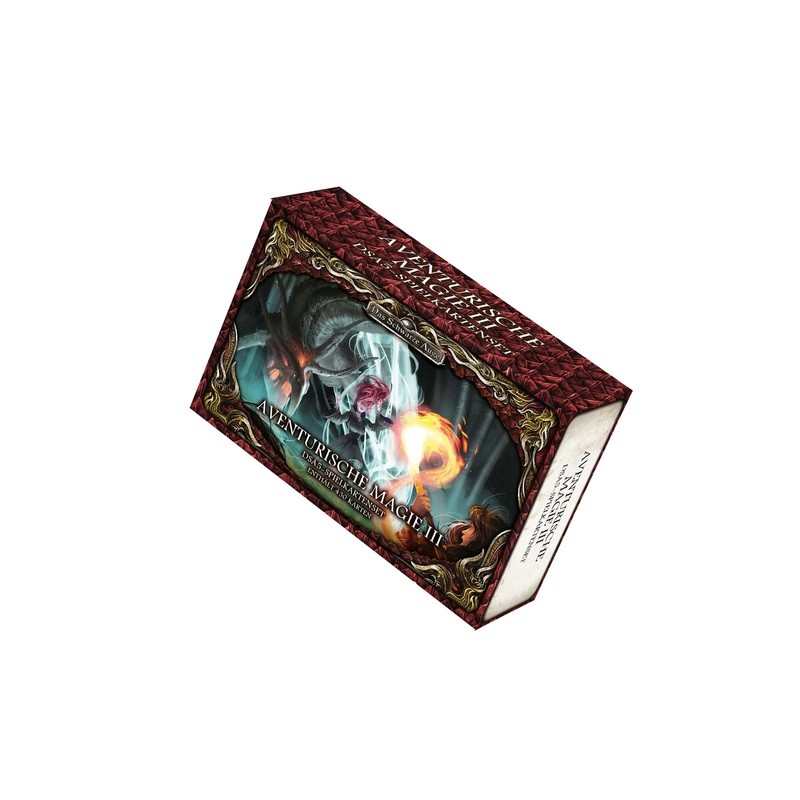 Dieses Spielkartenbundle enthält alle Spielkarten zu Vor- und Nachteilen, Sonderfertigkeiten, Zaubern und anderen nützlichen Übersichten aus Aventurische Magie III.