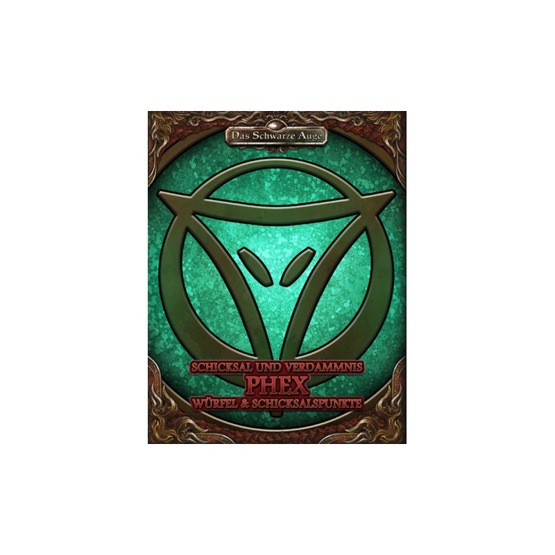 dem Symbol des Gottes Phex, einen Götter- und einen Kha-Würfel, einen