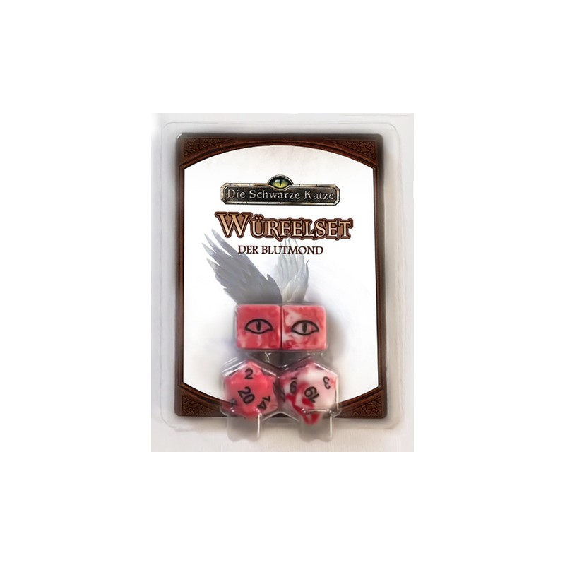 Die Erkenntnis kam aus dem Himmel zu ausgewählten Katzen, Hunden, Madern, Ottern, Feenhörnchen, Murmeltieren, Dachsen und anderen Tieren. Schon vor dem sog. Erwachen spielte der Mond eine große Rolle, ob man den Mond angeheult hat, als nachtaktives Tier nur in seinem Schein wandelte oder sein Licht Orientierung bot. So beudeutet der Mond für die erwachten Tiere Leben und ist Verbündeter, in dessen bleichen Leuchten das Leben versteckt vor den Zweibeinern stattfindet. Als besonderes Zeichen gilt der Blutmond: Wenn der ewig weiße Glanz des Mondes in ein blutiges Rot getaucht wird. Katzen gemahnt der Mond zur Vorsicht, Hunde werden im roten Schein fast rasend und manch Monster verlässt sein Versteck für die Jagd...die Jagd auf Erwachte. Passend zum Blutmond bieten wir das neue Würfelset "Der Blutmond" für Die Schwarze Katze an. Das Set beinhaltet zwei 20-seitige und zwei 6-seitige Würfel in passendem Design.