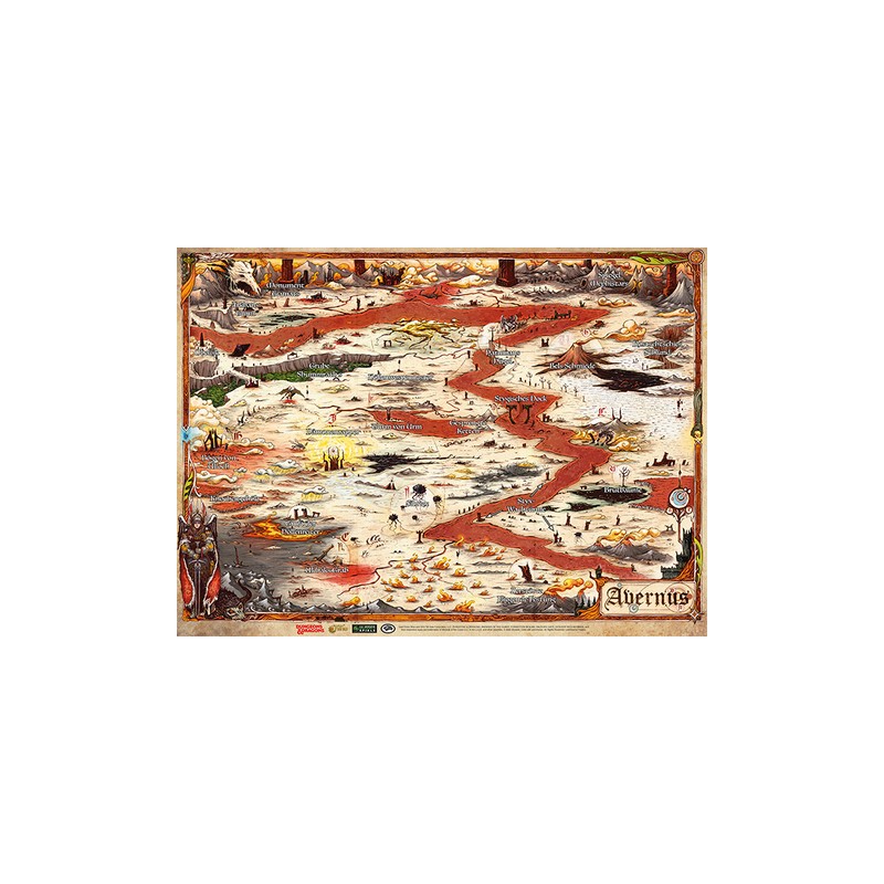 Die Landkarte Avernus, gedruckt auf strapazierfähigem, abwaschbaren Kunststoff, ist eine ideale Ergänzung für Kampagnen, die in dieser vom Blutkrieg geplagten Ebene stattfinden. Avernus und seine schrecklichen Bewohner werden im Buch „Baldur’s Gate - Abstieg nach Avernus“, ebenfalls erhältlich über Ulisses Spiele, im Detail beschrieben. Die Karte ist ca. 58 x 38 cm groß.