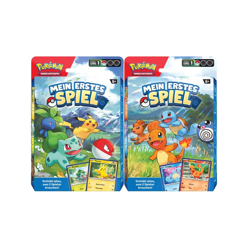 * 2 Mini-Decks mit jeweils 17 Karten (Bisasam und Pikachu oder Glumanda und Schiggy)