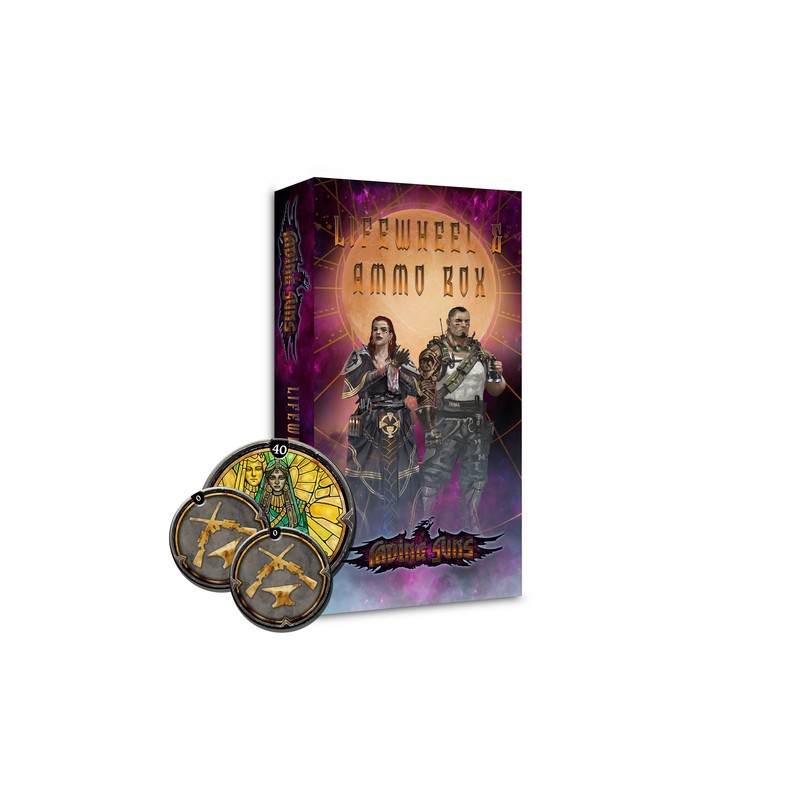 This set contains 10 universal lifewheels for tracking the troupe characters' vitality and 6 ammo wheels for tracking ammunition. Also included are 12 matching stickers for easy customization of the lifewheels with a Fading Suns Saint of your choise.