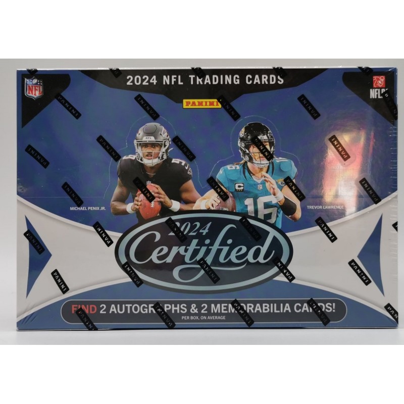 • Certified Football returns for the 2024 NFL season in all of its mirrored splendor, featuring the game’s biggest stars, brightest newcomers and most iconic legends. The 242-card base set features the fabled Freshman Fabric Signatures autograph memorabilia RCs.