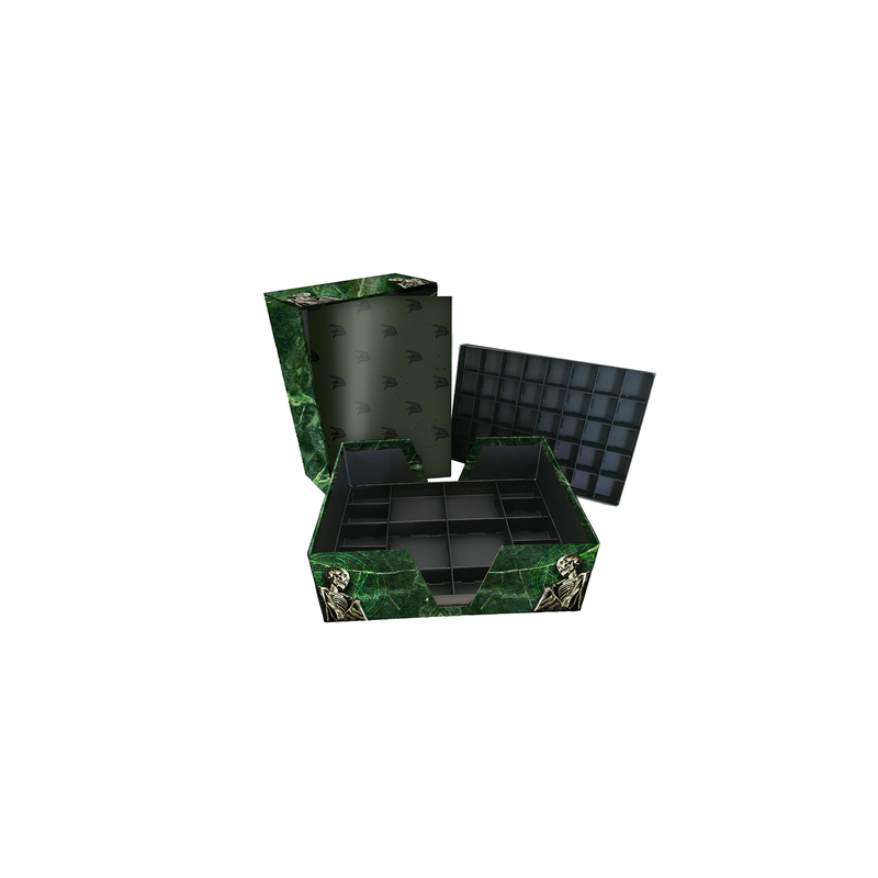 Diese liebevoll gestaltete Box aus stabiler und hochwertiger Kartonage ist ideal dafür geeignet, um Ordnung zu schaffen. HeXXen 1733 verfügt über eine Vielzahl an Markern, Plättchen, Pokerchips, Lebensrädern und Tischmatten - sie alle lassen sich in dieser Box hervorragend platzieren und ordnen! Der Inhalt ist variabel gestaltbar, verfügt von Haus aus über vier herausnehmbare Einleger, die in unterschiedlich große Felder unterteilt sind. Ein Einleger eignet sich für Deluxe-Pokerchip-Marker sowie die Lebenspunkt-Räder für HeXXen 1733 oder auch die HeXXenwürfel oder die Acrylmarker für Universalgegner. Zwei Einleger sind in kleinere Felder unterteilt und daher vor allem für die vielen Pappmarker geeignet, die beispielsweise die Gegner und Jäger im Kampf simulieren. Ein Einleger eignet sich zum Verstauen von Tischmatten oder andere größere Objekte. Ausmaße: Ca. 230 x 320 x 117 mm.