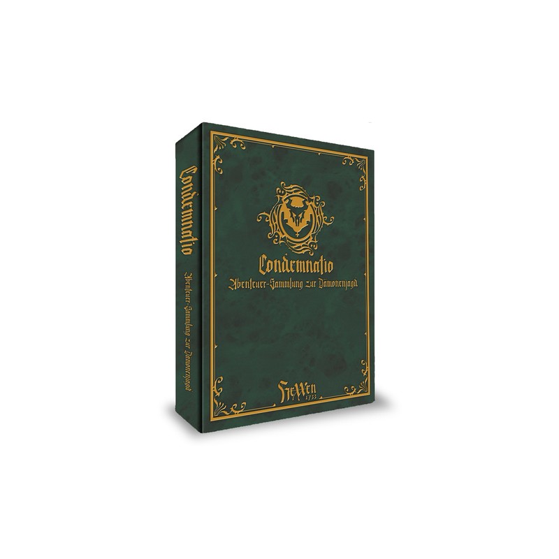 Die Spielbox Condemnatio umfasst vier mittellange Abenteuer, die jeweils einzeln oder auch in Form einer Mini-Kampagne gespielt werden können. Das titelgebende Abenteuer Condemnatio führt die Jäger ins Kloster Eberbach im Rheingau. Seltsame Dinge gehen hier vor: ein Flüstern in der Dunkelheit, unfassbare Phänomene in der Basilika ... Bald beginnt das Morden. Können die Jäger das Geheimnis des Klosters ergründen und den Mörder stoppen? Die Verheißung des Goldes spielt in Göttingen des Jahres 1733. Die Jäger werden beauftragt, einen mysteriösen Mord zu untersuchen. Wenig später entfaltet sich eine Geschichte voller Rätsel und Phänome. Ein Dämon treibt sein Unwesen, doch wer hat ihn gerufen? Und warum? Teuflische Begierde spielt in der Residenzstadt Bonn. Die Anhänger eines Kults des Astaroth haben Teile der Gesellschaft infiltriert und scheinen sogar im Hof des Fürstbischofs aktiv zu sein! Um den Hintermännern auf die Spur zu kommen, müssen die Jäger nicht nur einige Kämpfe bestehen, sondern auch diplomatisches Geschick, List und Heimlichkeit unter Beweis stellen. In der Box enthalten sind viele zusätzliche Elemente, die im Rahmen des erfolgreichen Crowdfundings für HeXXen 1733 freigeschaltet wurden, darunter das vierte Abenteuer Das Tor zur Hölle, eine beidseitig bedruckte Tischmatte, das Extra Heft Geschenke des Teufels, Stanzbögen mit den vielen neuen Monsterplättchen und vieles mehr!