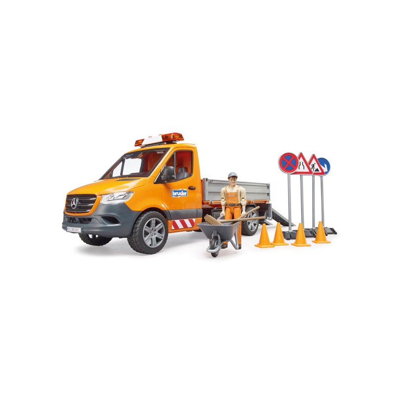 Zukunftsweisend, effizient, zuverlässig – so beschreibt Mercedes Benz den neuen Sprinter. Auch in der neuesten Generation bleibt er der vielseitige und allseits beliebte Transportprofi. Im umfangreichen Sortiment von BRUDER sind die neuesten Sprinter in unterschiedlichsten Varianten angekommen. Reparatur- und Wartungsarbeiten an Straßen, Gehwegen und Parkanlagen gibt es in jeder Stadt und Gemeinde zu sehen. Aufgrund seiner Größe und Variabilität, ist der MB Sprinter das bevorzugte Fahrzeug für diese Arbeiten bei vielen Kommunen. Dieser unverzichtbare Helfer, ist nun neu im Bruder Sortiment im bekannten Maßstab 1:16 zu finden. Das Fahrzeug besitzt eine kippbare Ladepritsche und die Bordwände lassen sich öffnen. Zum Transport kleiner Fahrzeuge, sind ansteckbare Auffahrrampen enthalten. Damit der Spielspaß gleich losgehen kann, ist der Bruder Bauarbeiter samt Schubkarre, Werkzeug, Schildern und Pylonen gleich enthalten. Für die bessere Sichtbarkeit ist der Sprinter mit einem Light & Sound Modul ausgestattet. Neben drei verschiedenen Sirenenlauten kann auch das Motorgeräusch des Fahrzeugs erzeugt werden. Somit steht der nächsten Baustelle im Kinderzimmer nichts mehr im Wege.