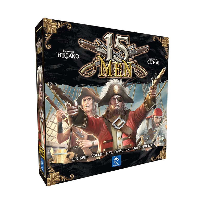 15 Men ist ein Spiel voller List, Täuschung und Meuterei auf einem Piratenschiff. Jeder Spieler schlüpft entweder in die Rolle des unerschrockenen Kapitäns, seines getreuen Loyalisten oder eines Halunken, der eine Meuterei plant. Bringt so viele Crewmitglieder auf eure Seite, wie ihr könnt. Bestecht sie mit Dublonen, um ihre einzigartigen Fähigkeiten für euch zu nutzen und eure Gegner zu übermannen, sobald die ersten Kugeln fliegen und der Showdown beginnt.
