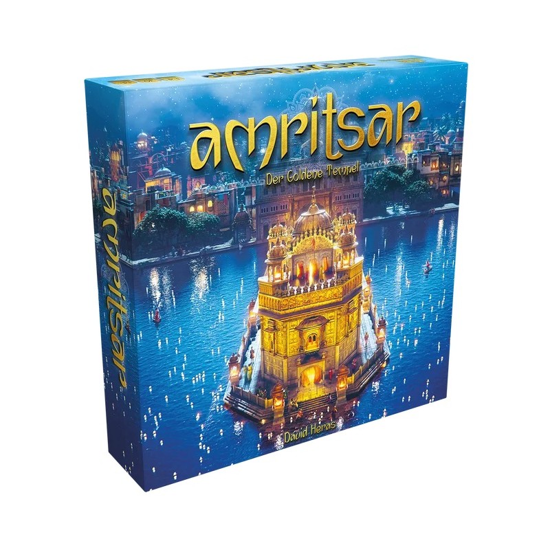 Im Worker-Placement-Spiel Amritsar: Der Goldene Tempel schlüpft ihr in die Rollen von spendenwilligen Unterstützern, die dem Maharadscha über drei Jahrzehnte hinweg beim Wiederaufbau des Goldenen Tempels helfen. Nutzt den klassischen Mancala-Mechanismus, um Arbeiter und eure eignen Elefanten einzusetzen und mit ihnen verschiedene Aktionen auszuführen. Euer Ziel ist es, möglichst viel Material für die Bauabschnitte des Tempels zu spenden und dadurch mehr Prestige als die Konkurrenz zu gewinnen. Am Ende des dritten Jahrzehnts gewinnt die Person mit den meisten Prestigepunkten dieses elegante und anspruchsvolle Eurogame.