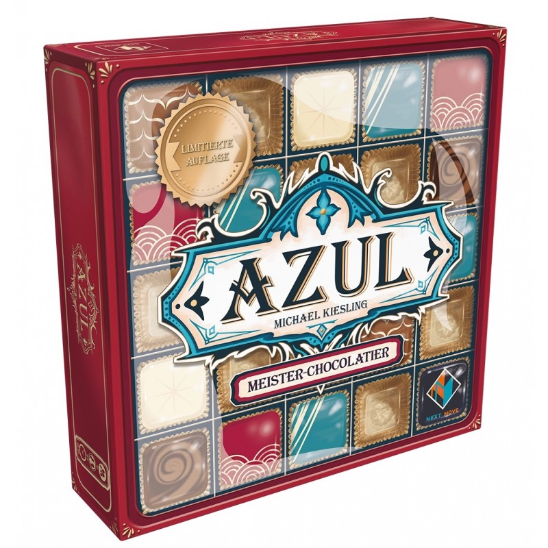 In Azul: Meister-Chocolatier kreieren die Spieler als Schokoladenkünstler die begehrtesten Pralinen-Sortimente der Welt. Die Spielregeln entsprechen denen des originalen Azul (Spiel des Jahres 2018), allerdings bringt die angepasste Optik mit Pralinen statt Fliesen das Herz eines jeden Schokoladen-Fans zum Schmelzen. Die Haptik des Spielmaterials bleibt dabei unverändert erstklassig. Darüber hinaus beinhaltet die limitierte Sammler-Edition insgesamt fünf verschiedene Sonder-Manufakturplättchen und bietet damit in jeder Partie mehr Varianz.