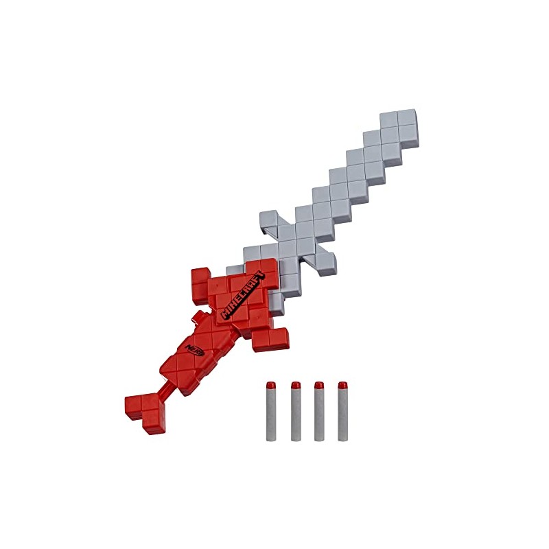NERF MINECRAFT HEARTSTEALER SWORD: this dart-blasting Nerf Minecraft sword takes its inspiration from the sword in Minecraft: Dungeons DART BLASTING SWORD WITH FOAM BLADE: the Nerf Minecraft Heartstealer sword blasts darts and has a foam blade. Children can play with it as a sword or a blaster for double the action-packed outdoor games INCLUDES 4 DARTS: the Nerf Minecraft Heartstealer dart-blasting sword comes with four Official Nerf Elite darts. It's a great garden toy for 8-year-old boys and girls for active outdoor play PULL-DOWN PRIMING HANDLE: easy priming! Children pull down the handle on the end of the sword. This Minecraft toy for boys and girls is a great present for Minecraft fans and Nerf battlers LOAD, PRIME, BLAST: easy 3-step play! Load a dart into the sword, pull the priming handle and press the button to fire the dart
