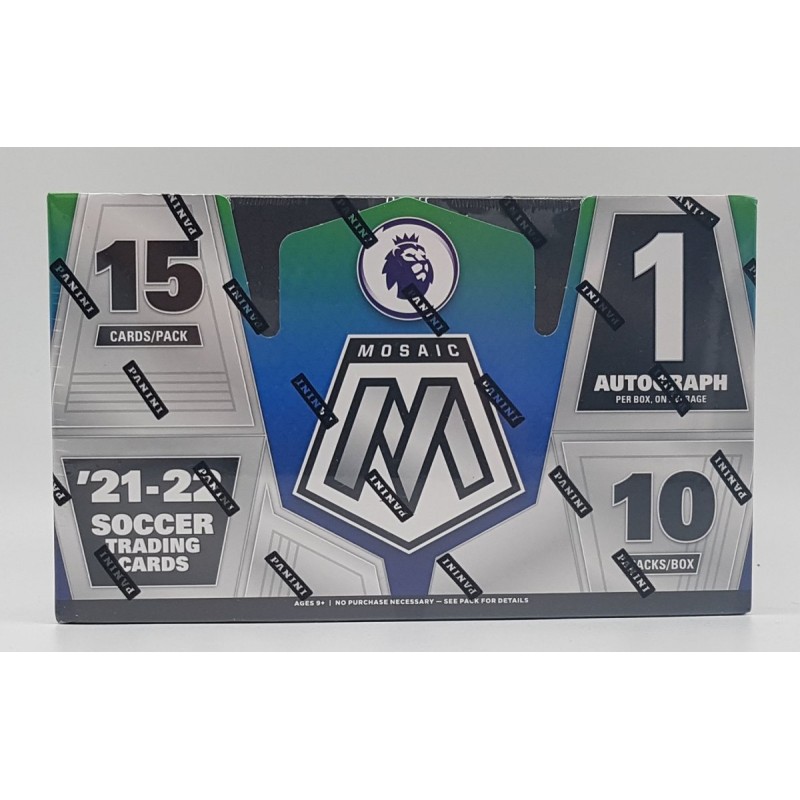 PREMIER LEAGUE AUTOGRAPHS: Look for two autographed cardsets in 2021-22 Mosaic Premier League: Premier League Autographs Mosaic and Premier League Scripts Mosaic. There is 1 certified autographed card per Hobby box, on average, and Hobby-exclusive parallel versions of each card.