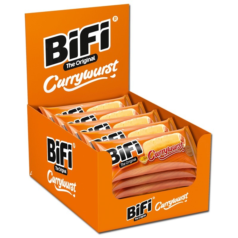 Zutaten: Mehl (Weizen, Weizenmalz), Tomatenmark, Wasser, Schweinefleisch, Zucker, Palmöl, Rindfleisch, jodiertes Speisesalz (Speisesalz, Kaliumiodat), Speck, Hefe, Rapsöl, Gewürze, Kräuter, Knoblauch, Emulgatoren (Mono- und Diglyceride von Speisefettsäuren, Citronensäureester von Mono- und Diglyceriden von Speisefettsäuren, Mono- und Diatylweinsäureester von Mono- und Diglyceriden von Speisefettsäuren), Magermilchpulver, Kartoffelstärke, Hühnererweisspulver, Hühnereigelbpulver, Säureregulator (Glucono-deita-Lacton, Ascorbinsäure, Citronensäure), Antioxidationsmittel (Natriumascorbat, Extrakt aus Rosmarin), Dextrose, Aromen, Konservierungsstoff (Kaliumsorbat, Natriumnitrit), Farbstoffe (Carotin), Modifzierte Stärke, Verdickungsmittel (Guarkernmehl, Methylcellulose, Johannisbrotkernmehl), Gewürzextrakt, Backtriebmittel (Calciumcarbonat), Buchenholzrauch. Unter Schutzatmosphäre verpackt. Nährwertangaben pro 100 g: Aufbewahrungshinweis: Vor Wärme schützen Lebensmittelunternehmer: LSI-Germany GmbH BiFi Snacks, Eyber Straße 81, 91522 Deutschland |