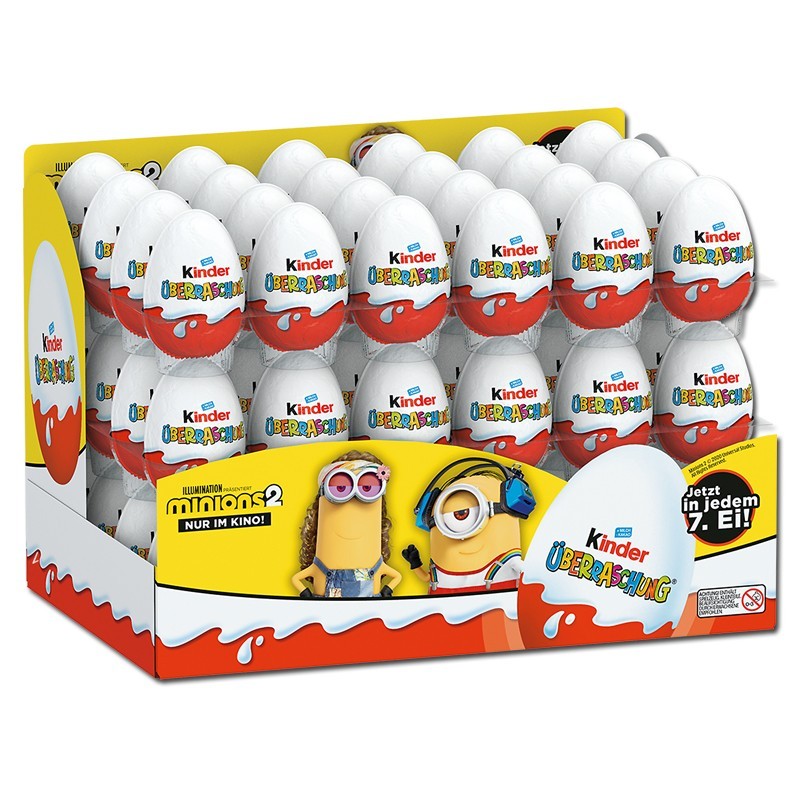 Zutaten: Vollmilchschokolade 47 % (Zucker, Vollmilchpulver, Kakaobutter, Kakaomasse, Emulgator Lecithine (Soja), Vanillin), Magermilchpulver (17 %), Zucker, pflanzliche Fette (Palm, Shea), Butterreinfett, Emulgator Lecithine (Soja), Vanillin. Gesamtmilchbestandteile im Produkt: 32 %. Gesamtkakaobestandteile im Produkt: 15 %. Nährwertangaben pro 100 g: ! ACHTUNG WARNHINWEIS ! Nicht geeignet für Kinder unter 3 Jahren. Enthält Spielzeug oder Kleinteile, die verschluckt oder inhaliert werden können. Beaufsichtigung von Erwachsenen wird empfohlen. Aufbewahrungshinweis: Kühl und trocken aufbewahren Lebensmittelunternehmer: Ferrero Deutschland GmbH, Hainer Weg 120, 60599 Deutschland |