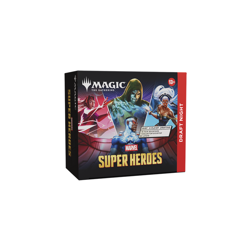 It's a draft party in a box! Draft Night is the self-contained kit for hosting a Pick-Two Draft for four players. Pick-Two encourages fast, dynamic drafting that's great for kitchen-table play or adding a dash of variety to game night! Crown the winner with the packed-in Magic: The Gathering | Marvel Super Heroes Collector Booster (or you can keep it for yourself—we won't judge).