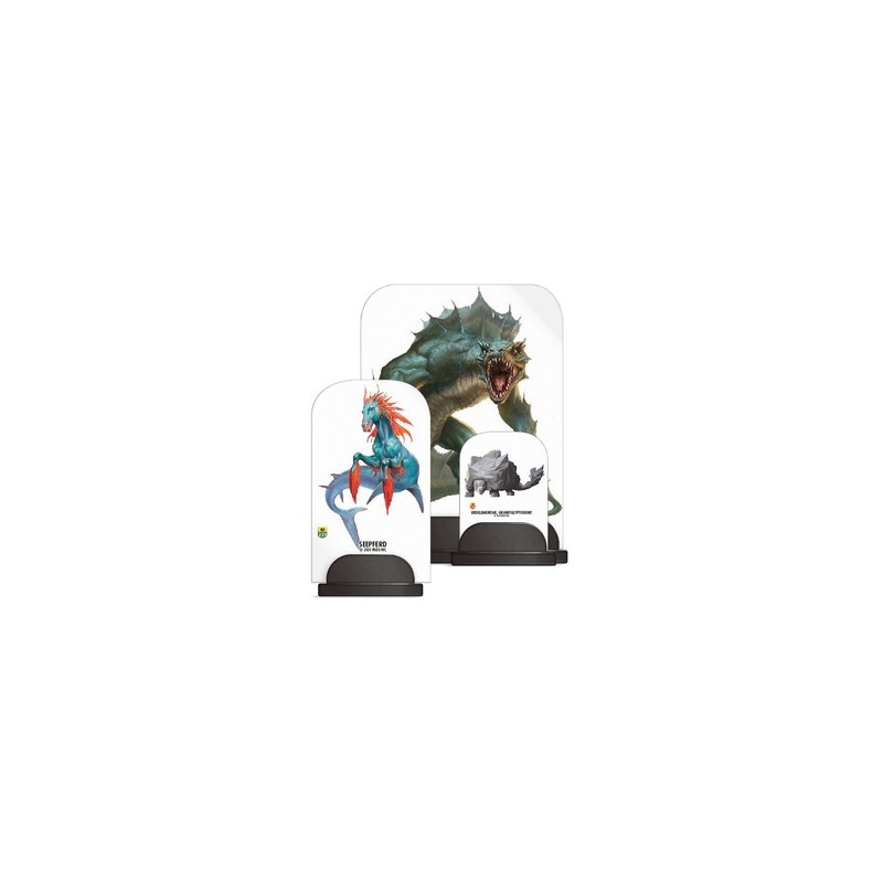Man kann einfach nie zu viele Monster haben! Die Monsterhandbuch 2-Aufstellersammlung liefert dir Nachschub mit allen möglichen bedrohlichen Kreaturen. Hier findest du hunderte von Kreaturen aus dem MHB 2, die sich bestens für Pathfinder oder andere Fantasy-Rollenspiele eignen Dämonen, Drachen, Teufel, Untote, schleimige Schrecken, außerweltliche Invasoren, launische Feen, hilfreiche Verbündete und mehr! Alle sind auf stabile Pappe gedruckt und passen in einen ihre Größe entsprechenden Plastikaufsteller (Aufsteller müssen separat erworben werden). Man kann sie bestens mit anderen Aufstellern und traditionellen Miniaturen mischen. Hab immer alle Monster für eine Begegnung zur Hand!