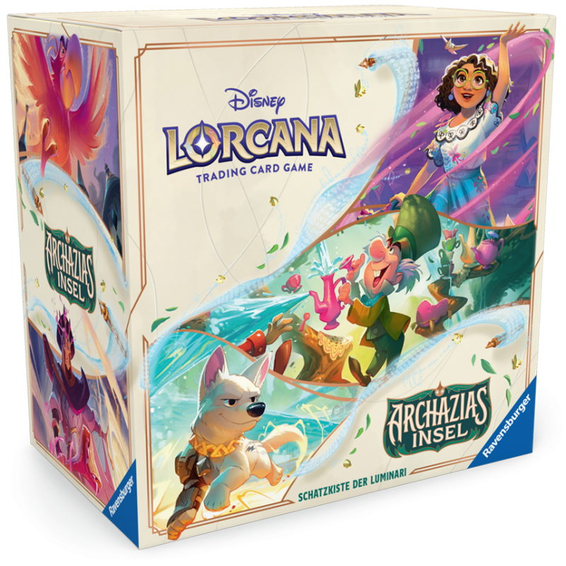 Die ultimative Wahl für Sammelnde und Spielende: Die Schatzkiste der Luminari enthält eine Aufbewahrungsbox mit sieben Kartentrennern im Design der Tintenfarben. Die Schatzkiste der Luminari enthält acht Booster Packs. Die sechs Würfel mit Perlglanz-Effekt helfen dabei, den Überblick über den Schaden auf deinen Charakteren und Orten zu behalten. Der Legendenmarker im Drehscheibenformat hilft dabei, ganz einfach den Fortschritt auf dem Weg zum Sieg festzuhalten! DIE SCHATZKISTE DER LUMINARI ENTHÄLT: - 1 Aufbewahrungsbox - 7 Kartentrenner - 8 Booster Packs mit je 12 zusätzlichen Spielkarten - 6 Schadensmarker-Würfel - 1 Legendenmarker