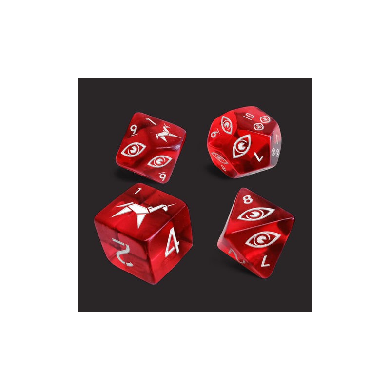 Ein Set von vier gravierten Basiswürfeln, die speziell für das offizielle BLADE RUNNER-Rollenspiel entwickelt wurden. Diese speziellen Würfel wurden entwickelt, um die Spielmechanik zu unterstützen, können aber auch als normale Würfel verwendet werden.