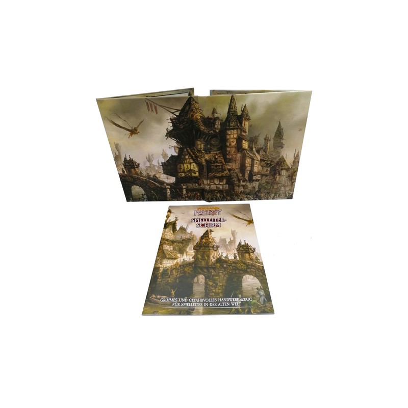 Ebenso eindrucksvoll und robust wie Altdorfs zuverlässige Schutzwälle bietet der Spielleiterschirm für das Warhammer Fantasy-Rollenspiel praktische Zusammenfassungen wichtiger Spielregeln sowie eine Auswahl essenziellen Handwerkszeugs für Spielleiter. Mit einer atemberaubenden Illustration der schwärenden Städte der Alten Welt auf der einen und wichtigen Tabellen, Referenzen und Regeln auf der anderen Seite ist der SL-Schirm ein ideales Werkzeug, um all deine schändlichen Pläne vor den neugierigen Blicken deiner Spieler zu verbergen.